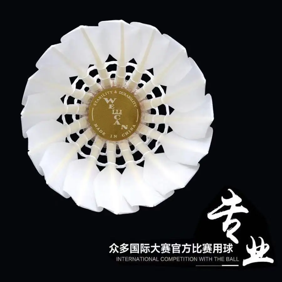 金威肯:比賽用一級(jí)大方鴨毛球,使用進(jìn)口碎木二拼球頭,球感A++,性能A+++,飛行AB,速度74至79速